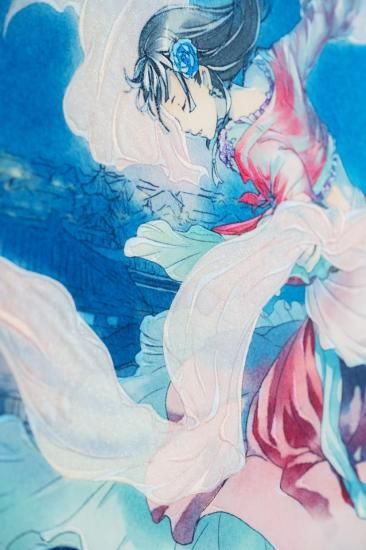 しのとうこ先生によるデジタル原画を、刺繍ならではの色彩や立体感で表現。